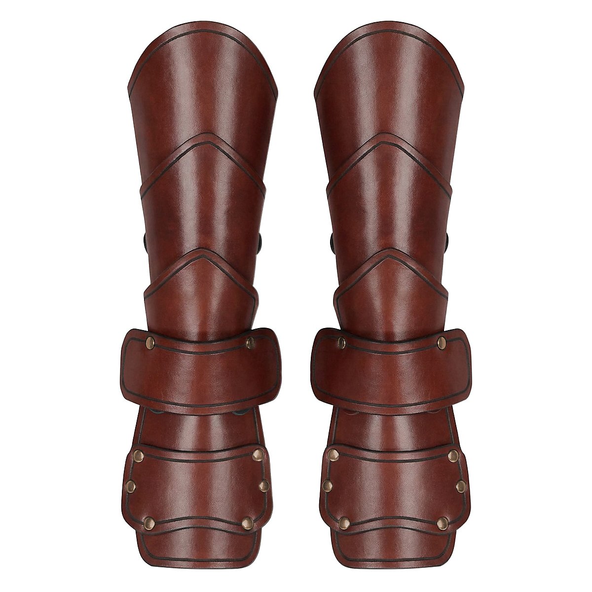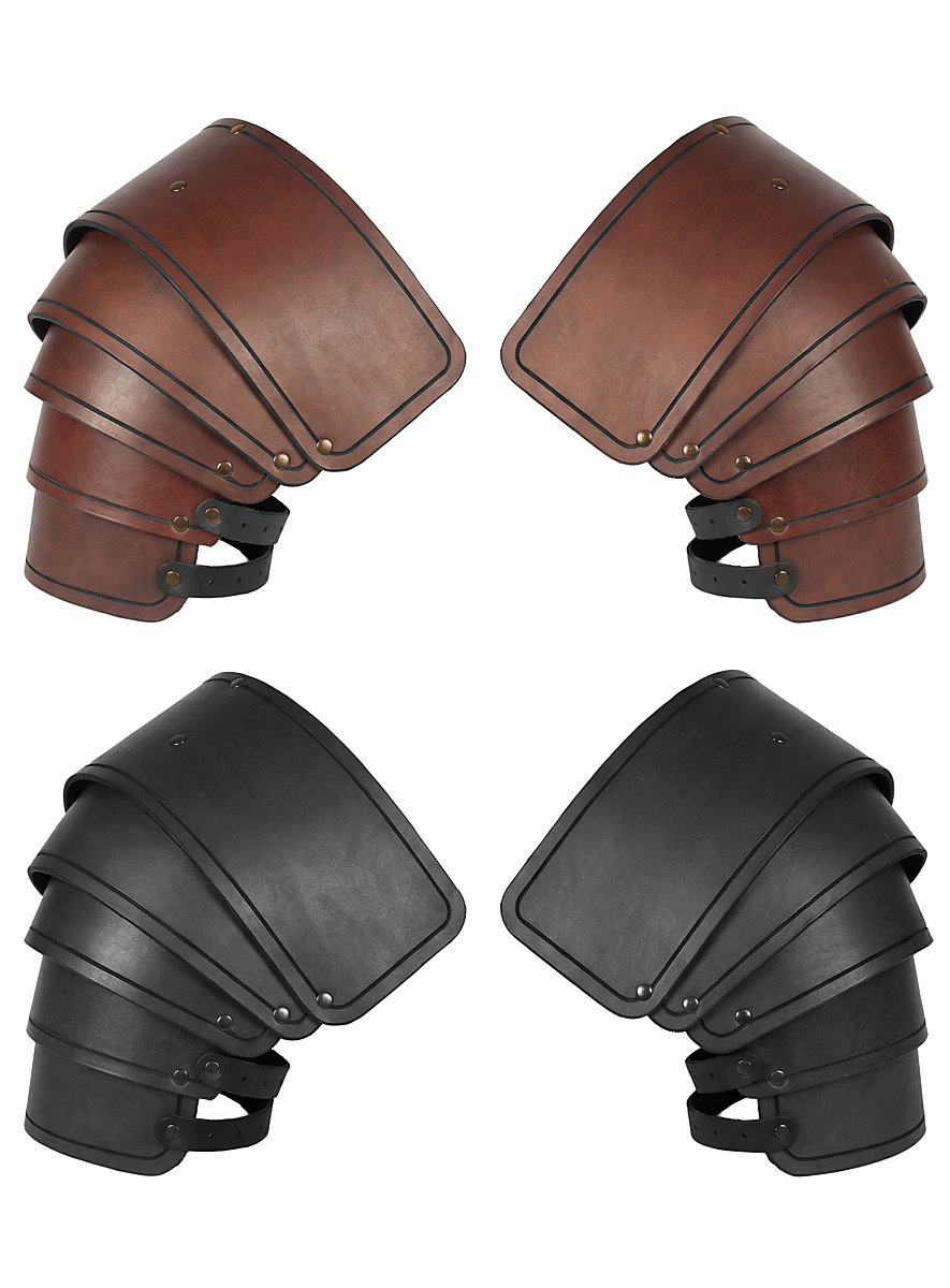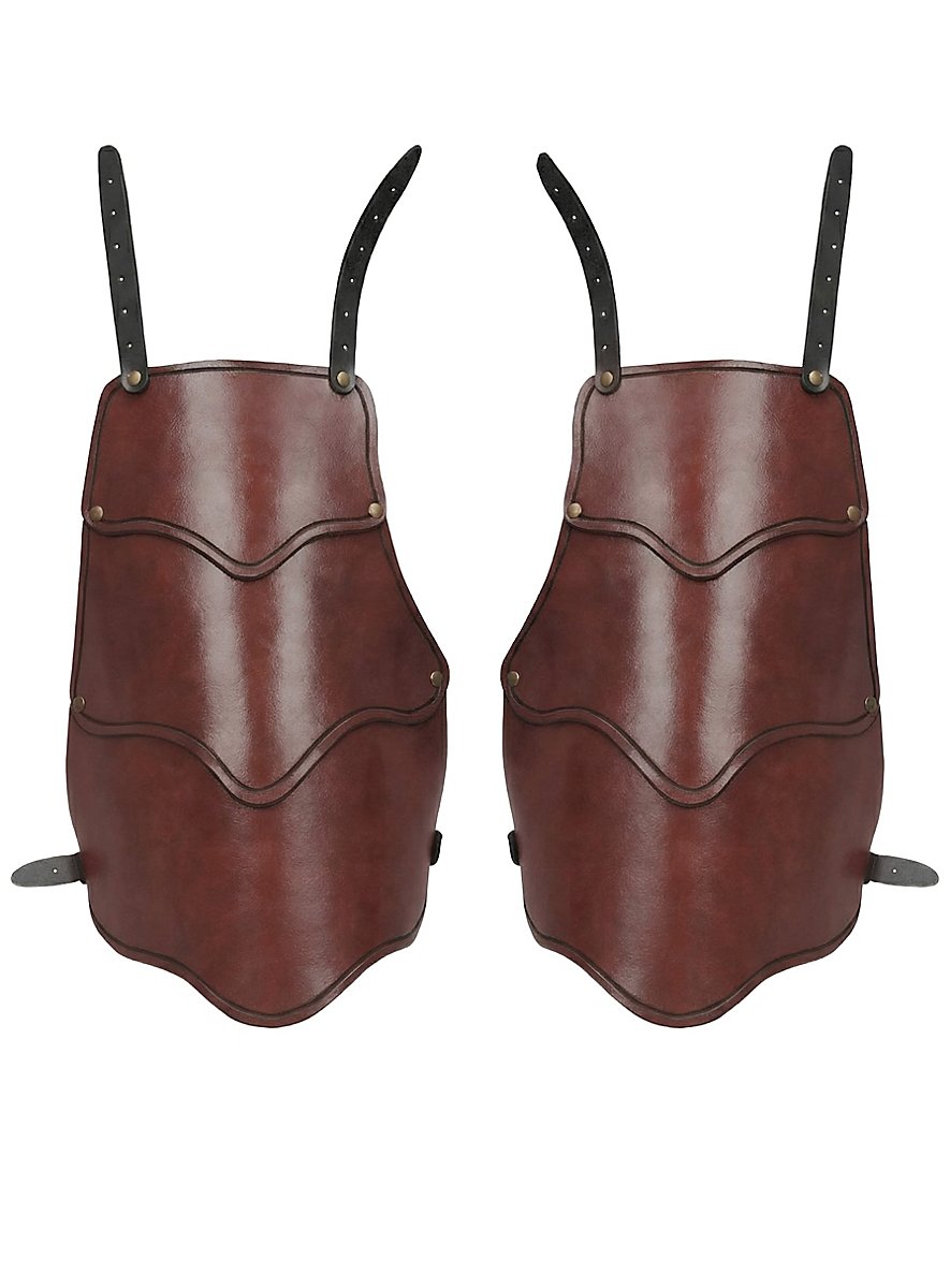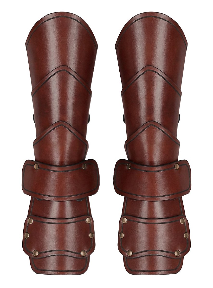 Gli elementi in pelle rivettati garantiscono una doppia protezione e conferiscono all'armatura un carattere forte. Fibbie e cinturini in pelle completamente regolabili consentono a chi indossa l'armatura da mercenario di adattarla individualmente alla propria corporatura e alle proprie estremità.