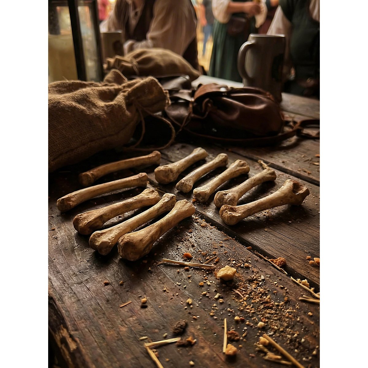 Ossa dall'aspetto realistico realizzate in resina fusa per cartomanti, druidi, sciamani e streghe per la chiaroveggenza. Gli hobbisti possono usare queste ossa e denti come ciondoli o gioielli per armature. Raccomandiamo queste ossa soprattutto ai vegani che vogliono creare l'aspetto marziale di un barbaro o di un orco, ma non vogliono usare veri prodotti animali. Anche i sopravvissuti al tempo della fine potrebbero gradire un osso o due nei loro abiti. Le ossa sono state modellate a partire da ossa di pollo. Sono dipinte a mano, il che conferisce loro un aspetto realistico.