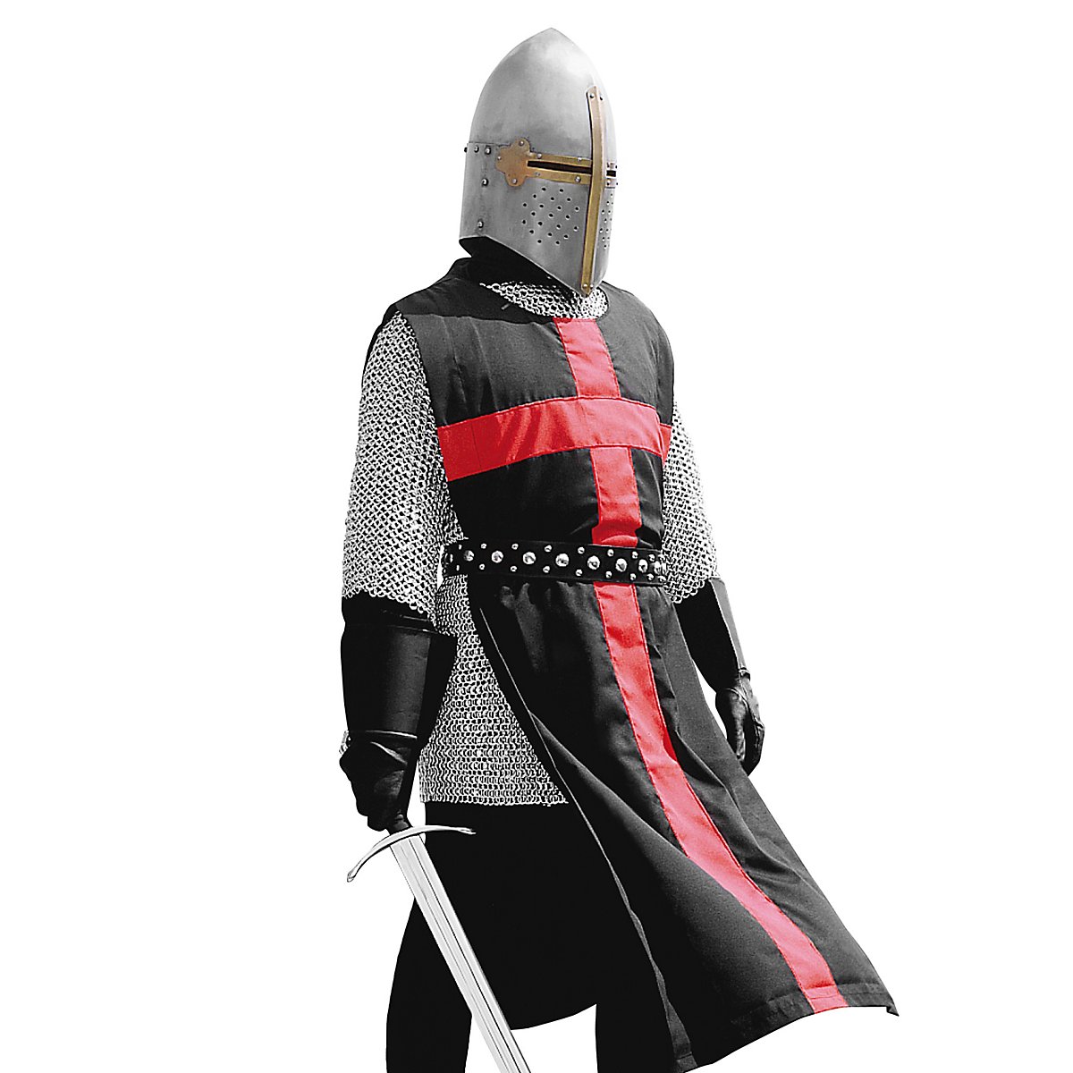 Fin dall'Alto Medioevo, il tabarro serviva a identificare il singolo cavaliere all'interno di un esercito, poiché più le bande di guerrieri diventavano numerose, più questo rendeva difficile il coordinamento tattico e il riconoscimento di amici e nemici. Ecco perché questa sopravveste, realizzata in puro cotone relativamente sottile ma molto robusto, è decorata con una croce rossa cucita. Il cotone leggero ma resistente è comodo da indossare, mentre i lati aperti della sopravveste aumentano la mobilità. Con il tabarro - croce rossa, il cavaliere mostra la sua fedeltà!